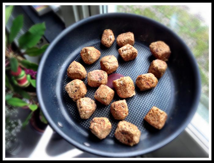 Öppna tonfiskburkarna, finhacka persiljan, mixa havregrynen, kläck äggen, finhacka löken. Blanda sedan ner alla ingredienserna i en stor bunke (se till att krama ur vätskan ur tonfisken). Rulla sedan bollar precis som köttbullar (jag gjorde 18st). Stek sedan bollarna på medelhög värme i ca 10 min.