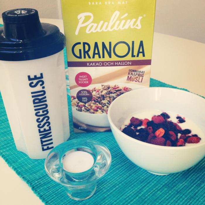 Jag kan verkligen rekommendera Granolan från Pauluns! Den är fantastisk i lite vanilj yoghurt med färska bär eller i keson med lite extra russin! Jag är verkligen helt beroende av den! En riktig hit annars är naturell yoghurt med en skopa One whey, helst vanilj skogsbär!