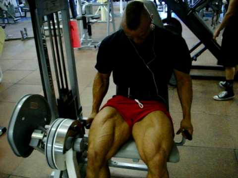 Denna kille stretchar RF med gummiband. Samma princip kan dock användas för träning av muskeln. Ena benet fram och benet som du ska träna, sätter du fast i en kabelmaskin med hjälp av ett vristspänne.