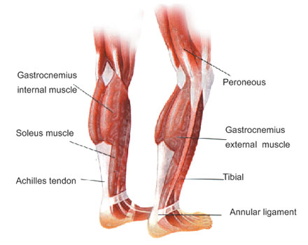 En annan övning är att träna muskeln i ett läge som ofta används vid terapeutisk stretch av denna muskel(se bild), eller stretch med hjälp av remmar kring foten. Tänkvärt är dock att vara försiktig i detta känsliga läge och inte rycka eller slita.