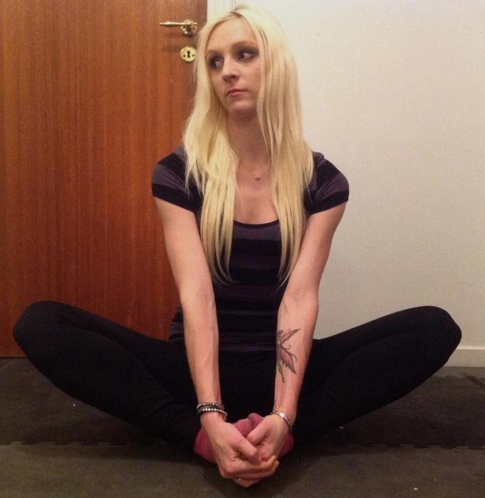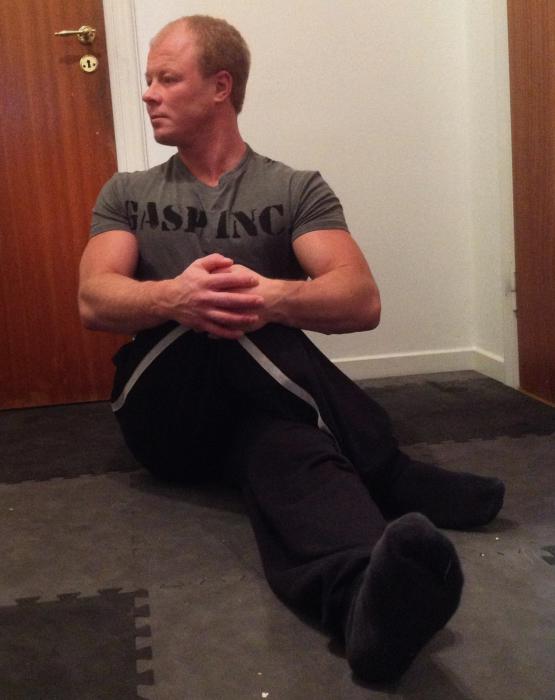 Kroppen riktad framåt, förutom ena benet som riktas rakt ut åt sidan. Ju mer du böjer åt sidan, ju större stretch får du i ljumsken på andra sidan. Du KAN få drag i "fel" ljumske här av olika anledningar, men det gör inget. Kör övningen ändå och koplettera med nedanstående övning.
