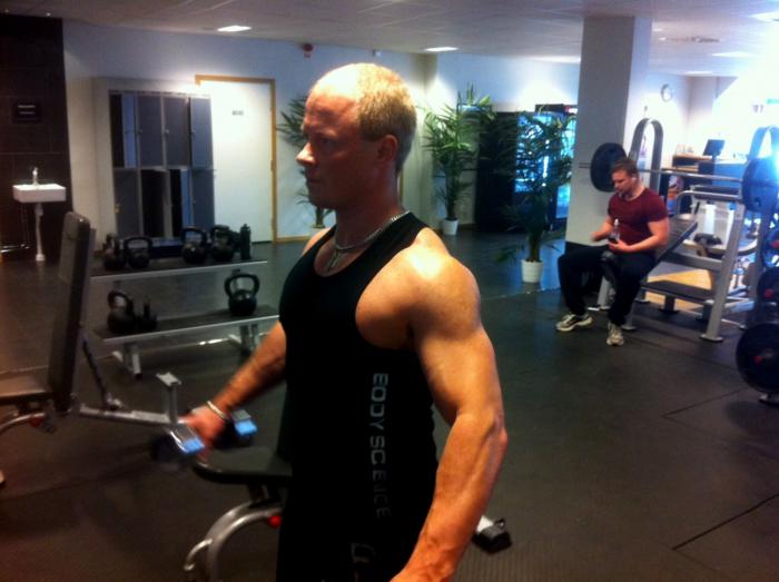 Vid enarms hantelross så måste kroppens bålmuskulatur arbeta för att kompensera för den